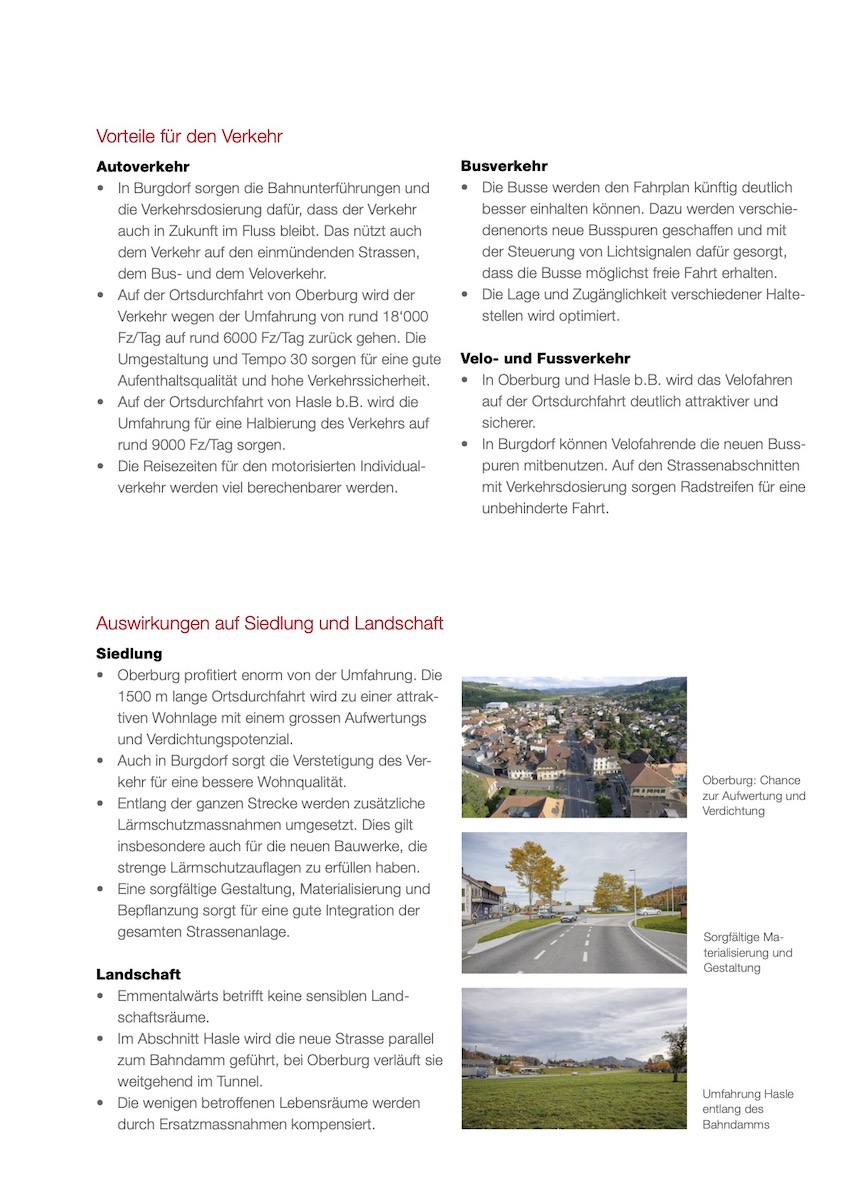 Die SVP Bern und Emmental stellt sich, ohne Gegenstimme und ohne Vorbehalte hinter die Verkehrssanierung. Alle Gemeinden des Emmentals befürworten dieses Projekt ebenfalls.