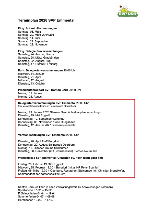 Willkommen bei der SVP Emmental