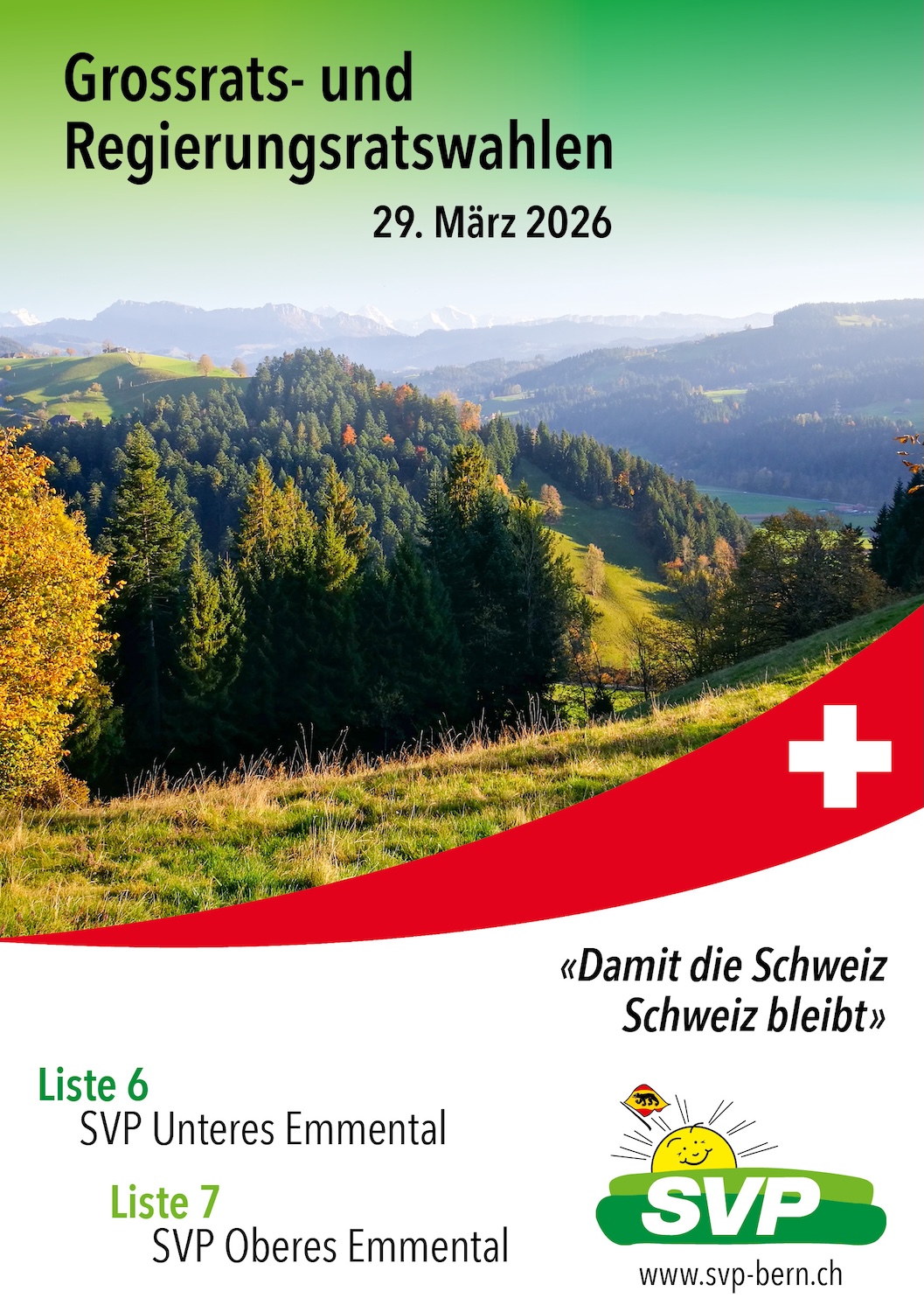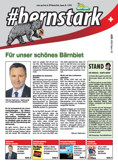Die SVP Kanton Bern setzt sich dafür ein, Gutes und Bewährtes zu erhalten, aber auch Probleme anzusprechen und zu lösen: für eine blühende Zukunft unseres Kantons Bern und unserer Schweiz!