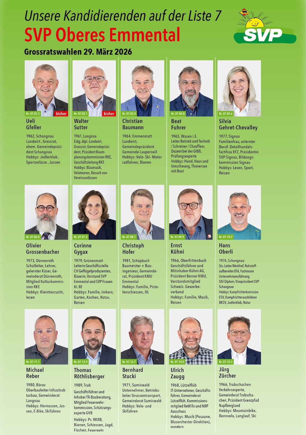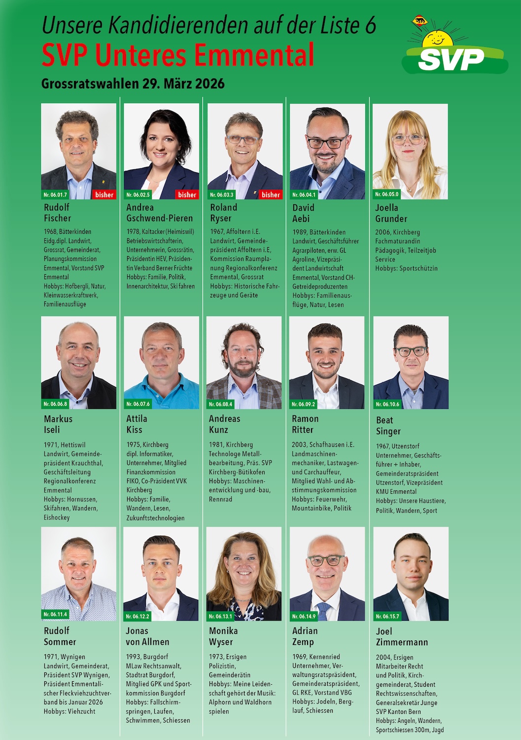 Nomination unserer Kandidaten für die Grossratwahl am 29. März 2026